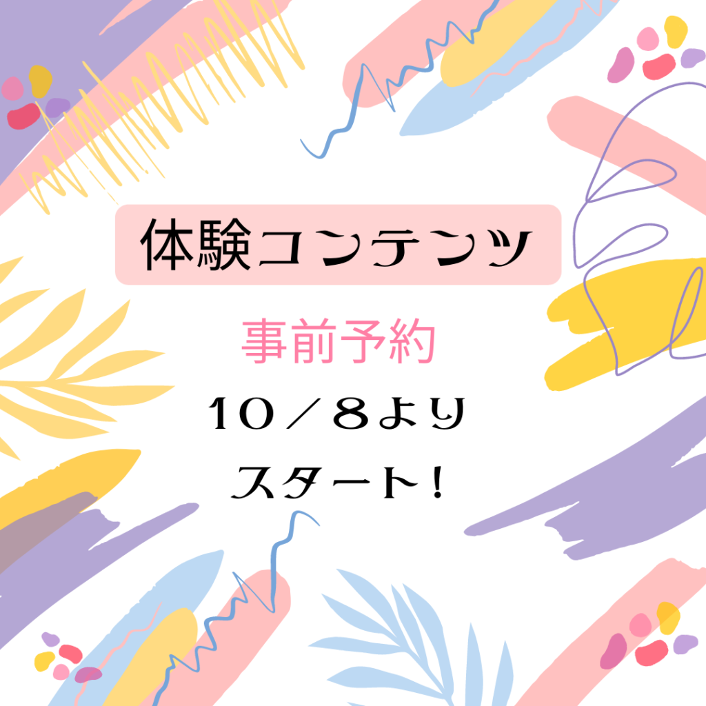 体験型コンテンツの事前予約、10/8より受付スタート♪