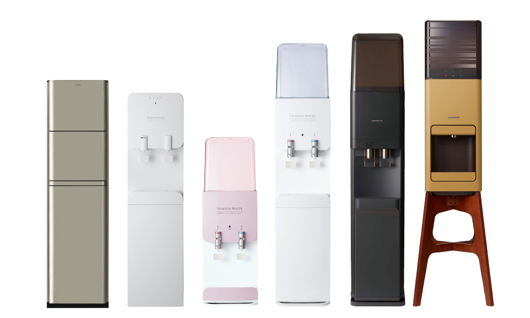 ウォーターサーバーはインテリアにも合うおしゃれなデザインから高機能なものなどラインアップしており、お客様のライフスタイルに合わせてお選びいただけます。